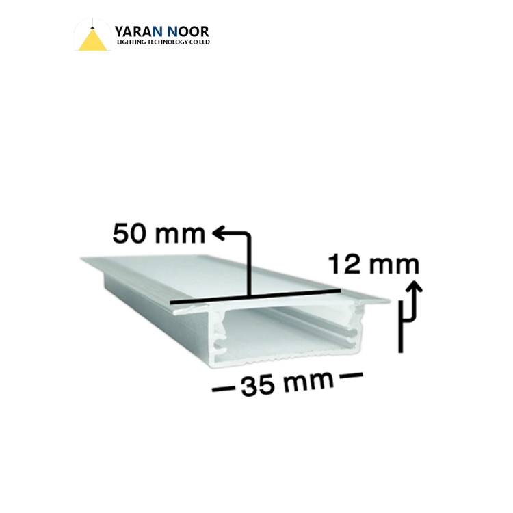 قاب لاین نوری کد 86 رویه 50 میل ارتفاع 12 میل کنافی تا شاخه 6 متری و در سه رنگ ، سفید ، مشکی و نقره ای قابل عرضه می باشد ،امکان ارائه تا رول ۵۰ متری جهت مکان هایی که نیاز دارید طلق به صورت یک تکه روی کار قرار گیردموجود است . ارسال به کلیه نقاط کشور .قیمت درج شده قیمت هریک متر از محصول می باشد . ابعاد داخل عکس کاملادقیق میباشد .برای محاسبه قیمت تمام شده لاین نوری کناف 3.5سانتی با رویه 5 سانت به صورت حدودی ، که به آن لاین نوری دو ردیفه نیز میگویند قیمت پروفیل را به علاوه ریسه مورد نظر که در مدبه قیمت لاین نوری اضافه کنید . درصورتی می خواهید قیمت تمام شده لاین 3.5سانتی کنافی را با ریسه های مختلف بدانید در قسمت پایین همین صفحه راهنمای خرید لاین نوری را مشاهده کنید . قیمت درج شده بر حسب یک متر بدون دفیوزر میباشد .لطفا در هنگام خرید به علت عرضه محصول در شاخه های ۳ متری مقدار خرید را روی ضریبی از عدد ۳ قرار دهید که در هنگام ارسال به صورت شاخه کامل برای شما ارسال گردد .کاربرد:این پروفیل برای نصب لاین نوری توکار در سقف کناف یا دیوارهای گچی استفاده میشود و باعث ایجاد نور مخفی مدرن و خطی میگردد.نورپردازی سقف کناف،آشپزخانه پذیرایی، اتاق خواب، راهرو دفاتر اداری و فروشگاهها.نور خطی کنار دیوار یا لبه سقف . متریال:آلومینیوم آنادایز شده در سه رنگ مشکی ،سفید و آلومینیوم خام میباشد.هیت سینک آلومینیوم برای دفع حرارت وفضای داخلی پروفیل به گونه ای طراحی شده که2لاین ال ای دی قابل استفاده میباشد.امکان اجرای خط نوری ممتد بدون درز.مناسب برای کناف هایی که عمق 12میلیمتر میباشد. . برای سفارش دیفیوز این پروفیل اینجا کلیک کنین