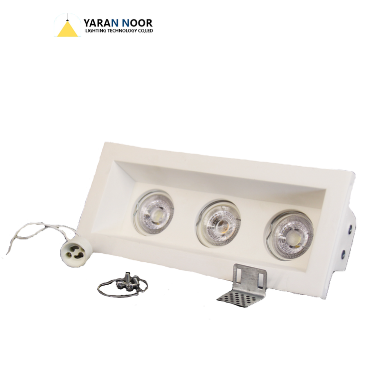 قاب هالوژن توکار از جنس گچ فشرده با طراحی مدرن و هماهنگ برای نورپردازیهای خطی و دکوراتیو.