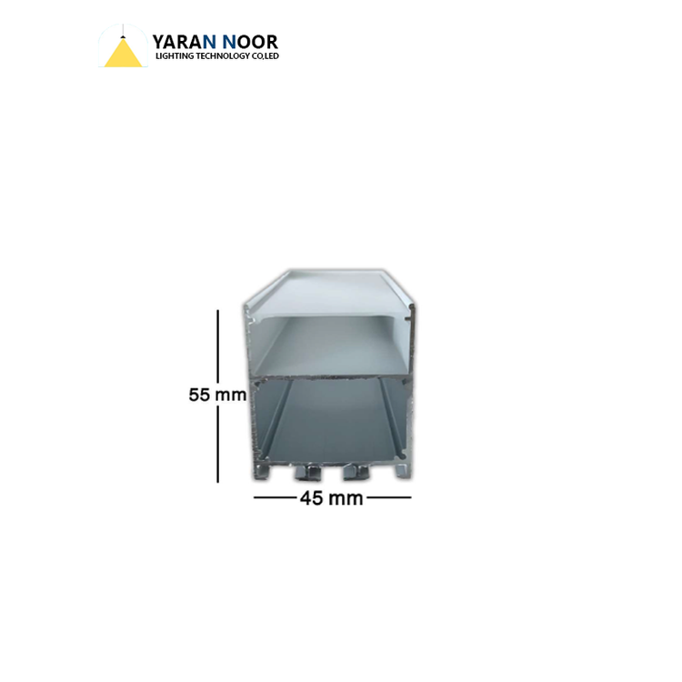 قاب چراغ لاینی آویز رویه ۴۵ میل ارتفاع ۵۵ میل، لاینر ها محبوب ترین چراغ های این روزها در دنیا می باشند و عضوی از خانواده لاینر ها، لاینر آویز می باشد ، لاینر آویز در طول های مختلف در هر کجا که فکر آن را بکنید مورد استفاده قرار میگیرد . بالای کانتر های فروشگاهی میز های کنفرانس سقف فروشگاه ها و ،،،،،، لاینر های آویز خود رو از سقف جدا کرده و به سمت پایین توسط سیم های بکسل محکم ولی بسیار با دوام به سطح زمین نزدیک میکنند . همیشه قصد از آویز کردن چراغ های لاینر بحث زیبایی ان است که به فضا جلوه ای متفاوت می بخشد . شما توسط این قاب چراغ لاینی آویز رویه ۴/۵ سانتی به راحتی می توانید از زیبایی این مدل چراغ لاینی بهره مند شوید .نکته اخر اینکه این مدل از چراغ لاینر به صورت اشکال هندسی مربع و مستطیل نیز بسیار زیبا و شیک میشود در صورتی که نیاز به فارسی بر کردن این فریم برای ساخت اشکال هندسی مربع یا مستطیل دارید با ما تماس بگیرید .قیمت بر حسب یک متر بدون دفیوزر میباشد .به صورت آویز در فضاهای مختلف بالای میز کانتر ،میزکار میتوان استفاده کردو به صورت روکارهم بدون نیاز به برش قابل استفاده میباشد.هیت سینک آلومینیوم برای دفع حرارت وفضای داخلی پروفیل به گونه ای طراحی شده که دو لاین ال ای دی قابل استفاده میباشد.مناسب برای نورپردازی آویز در فضای داخلی؛ یعنی پروفیل از سقف آویزان شده و نور خطی ایجاد میکنداستفاده در فضاهای تجاری، هتلها، دفاتر اداری یا سالنهایی که طراحی مدرن با نور خطی برجسته دارند.از دید طراحی داخلی، مدل آویز باعث ایجاد جلوهٔ ویژهای میشود که متفاوت از نور مخفی یا پنهان است.اگر میخواهید یک المان نورپردازی خطی داشته باشید که جنبهٔ طراحی لوکس داشته باشد و در ارتفاع دیده شود، پروفیل لاین نوری کد ۴۱ انتخابی هوشمندانه است. ترکیب کیفیت ساخت، طراحی آویز و خروجی نور مناسب آن را از گزینههای معمول متمایز میسازد.برای سفارش دیفیوزر این پروفیل اینجا کلیک کنید.