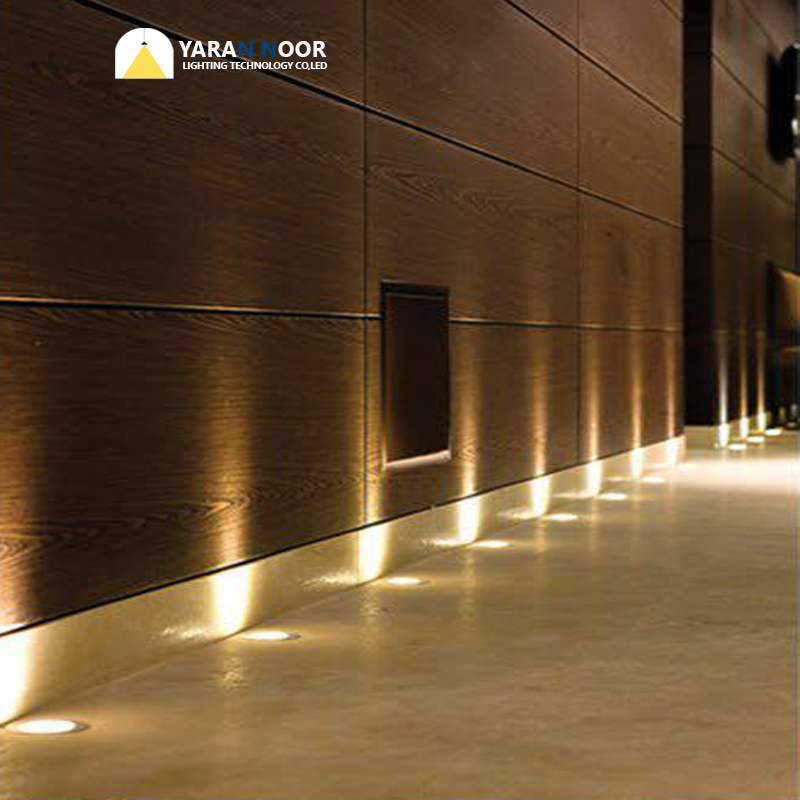 اگر به دنبال نورپردازی مینیمال و مخفی هستید، چراغهای دفنی بهترین انتخاب هستند. این چراغها داخل زمین یا کف محوطه نصب میشوند و نور را به سمت بالا میتابانند.
