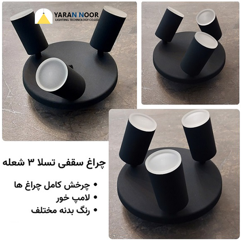 قطر کفی : 20cm طول هر شعله : 10cm قابلیت چرخش 360 درجه لامپ خور (دارای سرپیچ سرامیکی لامپ GU10) آلومینیومی در رنگ های سفید مشکی طوسی نقره ای (استیل) طلایی در رنگ های ترکیبی بالا نیز موجود است. تکنولوژی ساخت: CNC قابل نصب بر روی سقف و یا کناف نورافزا | تولید کننده محصولات روشنایی انواع ست لوستر و چراغ دیواری استوانه ای شکل برای این محصول موجود است.