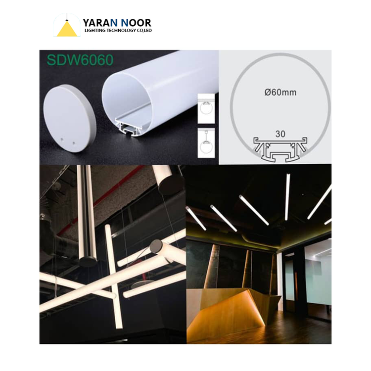نورپردازی اصلی درفضاهای اداری،تجاری و مسکونی مدرن.استفاده به عنوان چراغ خطی معلق روی میزکار،کانتر یا میزکنفرانس.نصب در آشپزخانه ها(بالای جزیره یامیزناهارخوری).استفاده در لابی ها وراهرو های مدرن برای ایجاد جلوه معماری.ترکیب زیبایی مدرن ونورپردازی کارآمد.آلومینیوم آنادایز شده در سه رنگ مشکی ،سفید و آلومینیوم خام میباشد.طراحی داخلی پروفیل امکان نصب دو ردیف ال ای دی را داردوبااستفاده از کابل های فلزی(استیل)یا سیم بکسل ازسقف آویزان میشود.